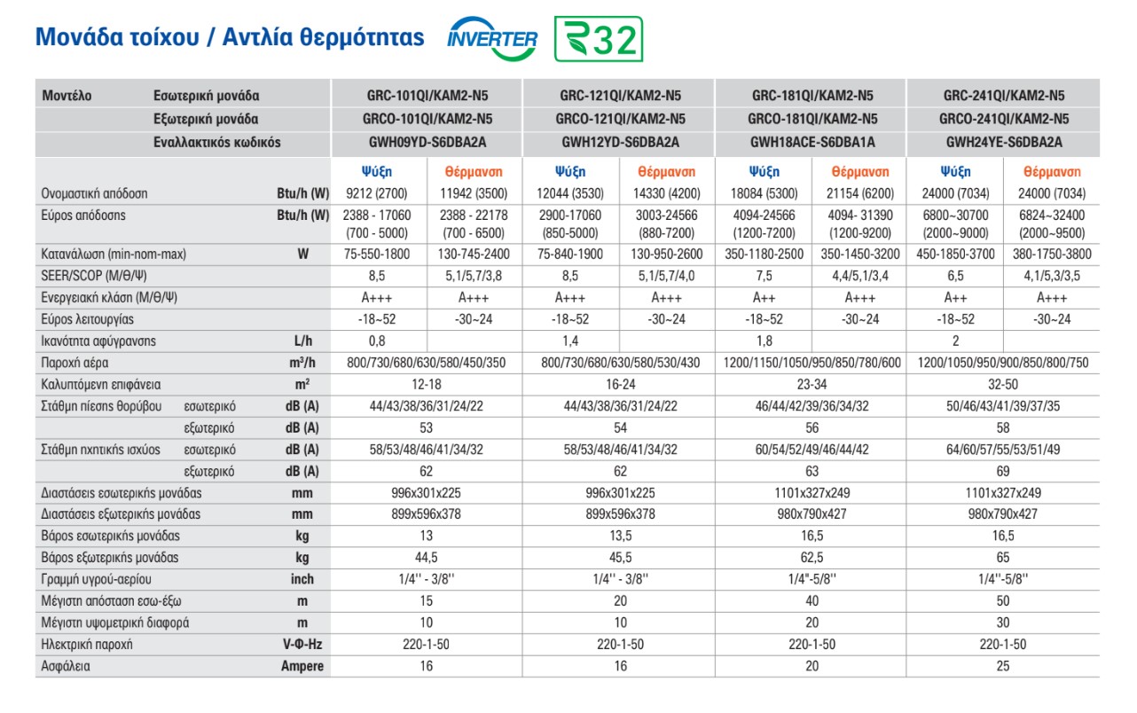 , grc/grco-101qi/kam2-n5 amber κλιματιστικό